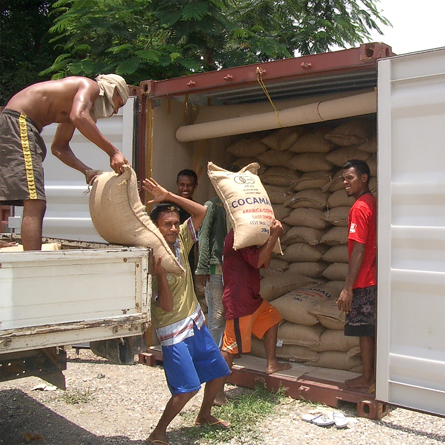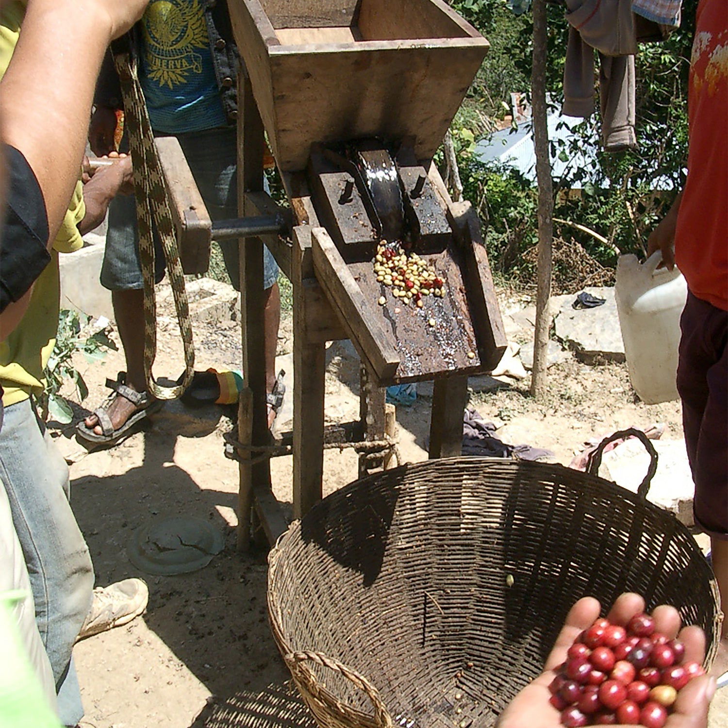 マウベシは標高1,300~1,700メートルの山間部に位置し、日中の陽射しの強さに比べて朝晩の冷え込みが激しい地域です。また年間降雨量も比較的多く、おいしいコーヒーが育つ条件に恵まれています。東ティモールでのコーヒー栽培はポルトガル植民地時代に始まりますが、マウベシで広範囲にコーヒー栽培が始まったのは1960年ごろからと比較的新しく、平均1ヘクタールあまりの小規模栽培が主です。マウベシには約4,000世帯、25,000人ほどが住んでいますが、そのほとんどがコーヒーを栽培しています。このマウベシ地域に「マウベシ農業協同組合」略称コカマウが組織されています。